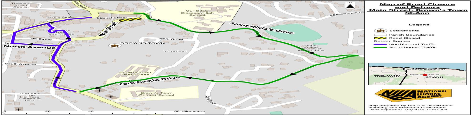 The National Works Agency (NWA) is advising the public that Top Road in Browns Town, St. Ann, which was closed three...